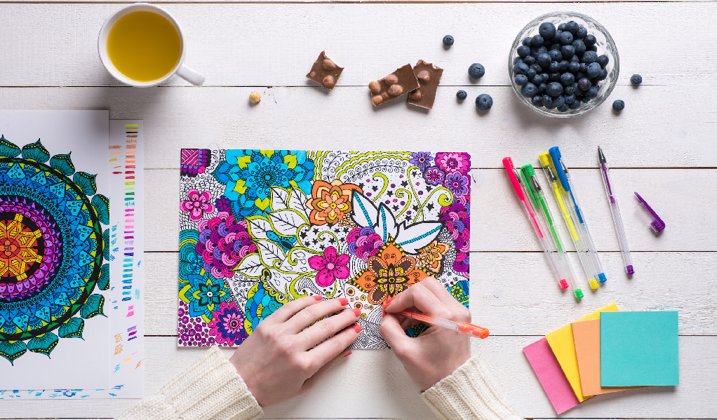 Mindfulness colouring is a calming activity that can be used to help lower stress levels and improve overall wellbeing.